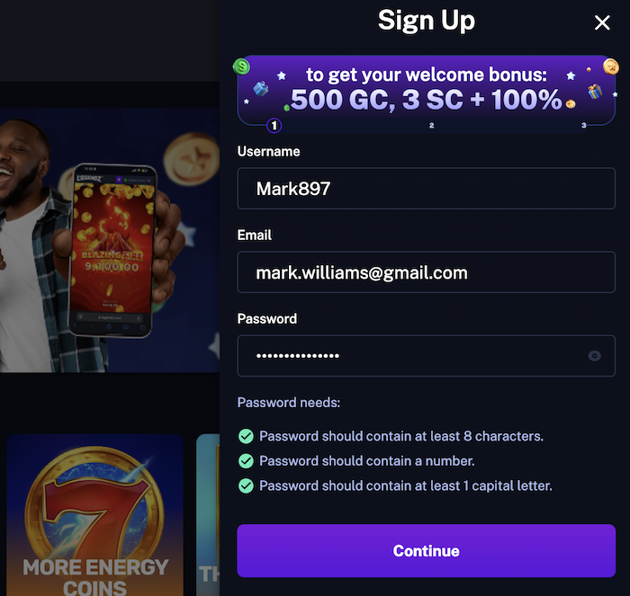 The Legendz.com no-purchase bonus guarantees 500 Gold Coins and 3 free Sweeps Coins immediately after sign-up. Register for a new account and use our code SWEEPSY to get the bonus. It’s very easy, and the GC and SC will appear in your Legendz sweepstakes account as soon as you’re account is verified. You may also need to confirm your phone number and/or email via link or code sent to your device.