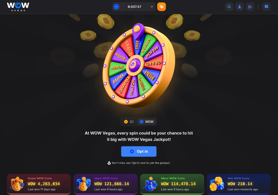 And if big wins are what you're after, the WOW Vegas Jackpot lets you opt into a growing SC prize pool that can hit on any spin. There’s no separate bonus game. Opt in, and you will contribute an additional 0.10 SC per spin to these random jackpots.
